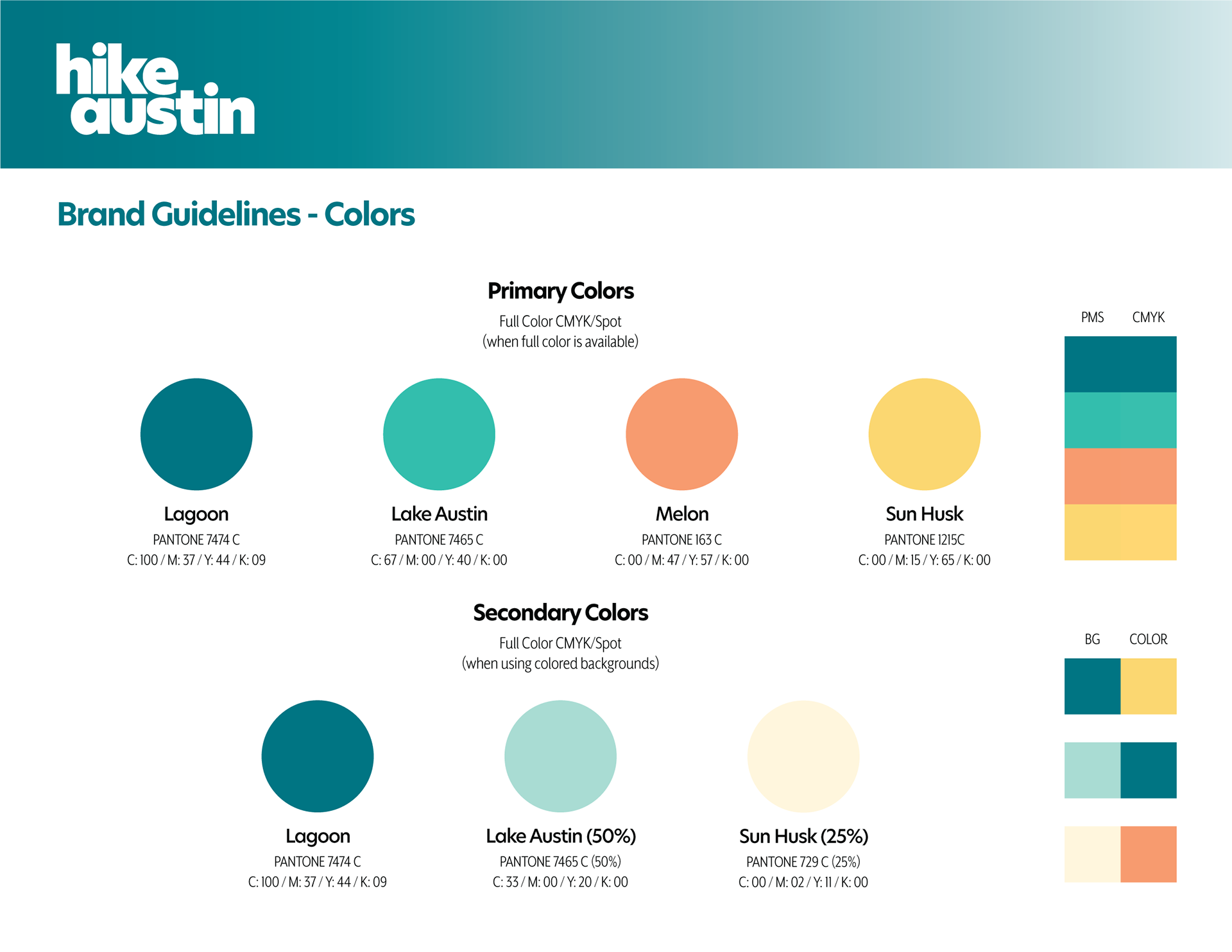 Logos and branding guidelines for community-driven trailguide Hike Austin.