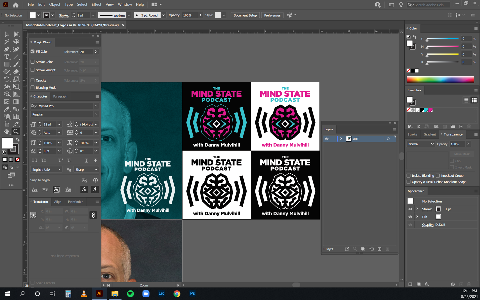 The rest of the logo came together through layout/hierarchy of type, finishing just in time for his intended launch. Since this posting Danny has began his show and is utilizing the logo throughout his promotions for the podcast. Ultimately, we discussed using the logos for other avenues of this project which I am excited to see in the future. It was a blast working on this and I suggest taking a listen to the show for some insight on personal development.