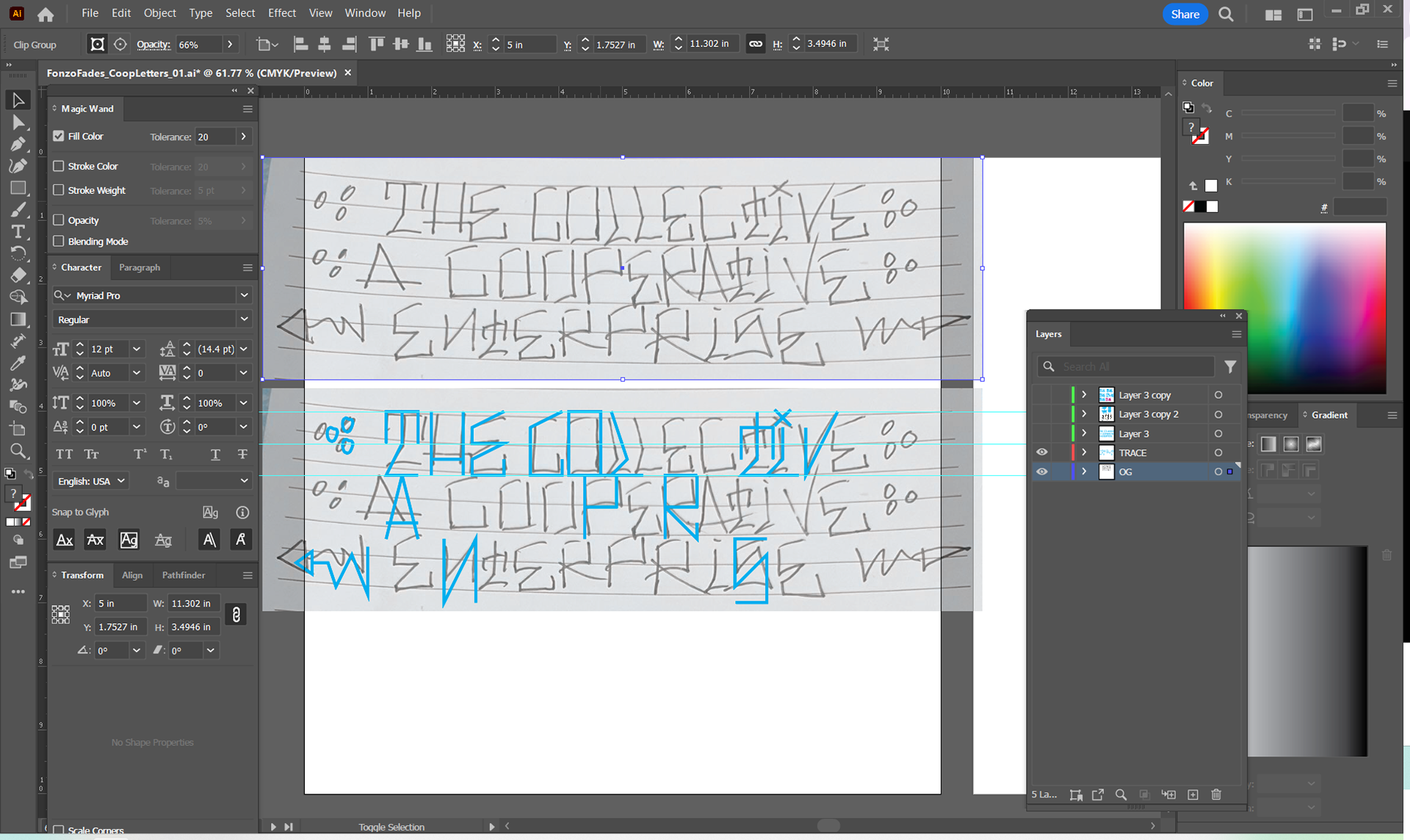 Soon after going solo in his barber endeavors, Fonzo and I began discussing branding and merchandising during our visits. He reached out to me when his new studio opened to help him bring an idea to life that he and his father were working on. Fonzo had an idea for a type treatment initially intended for t-shirts that he asked his dad to collaborate with. Fonzo asked his father to create some letters for his new brand and then asked me to digitize the letters for them. This was a project I was very happy to work on as it came from a very personal place and those projects often are the most satisfying to be a part of.